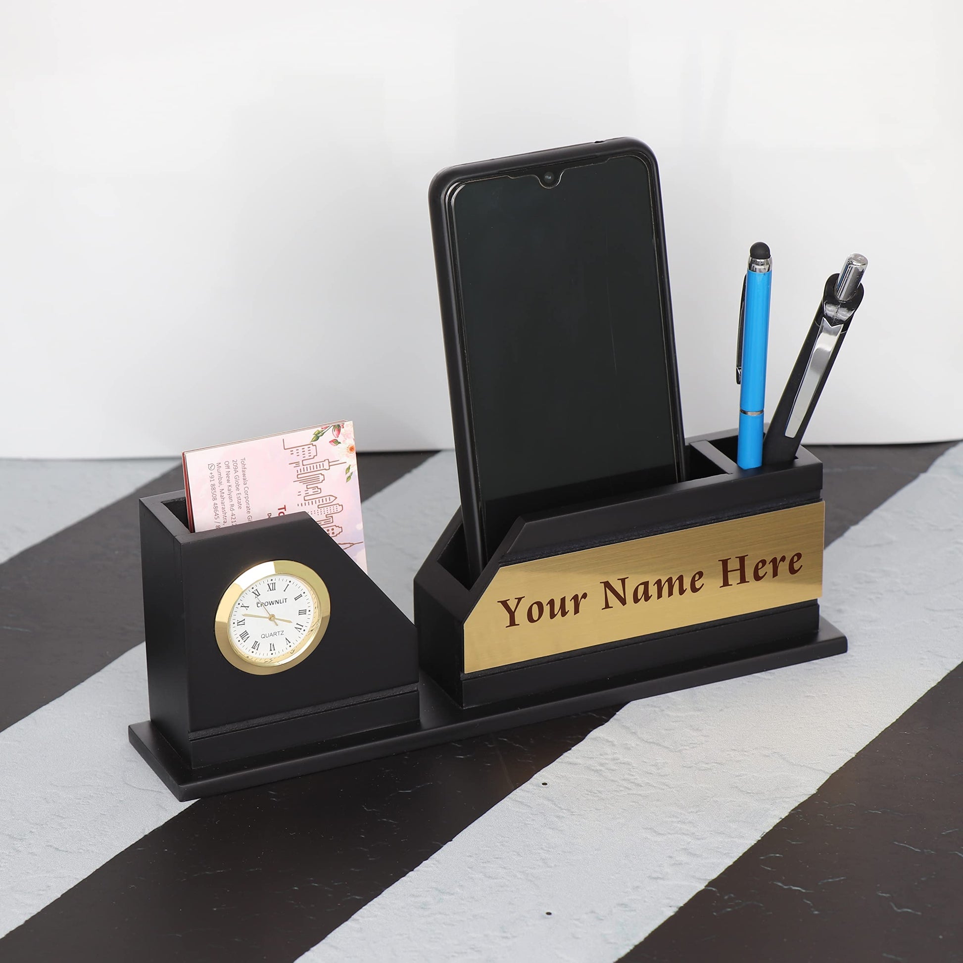 - PERSONALIZED PEN STAND WITH CARD HOLDER TABLE WATCH AND MOBILE PHONE STAND