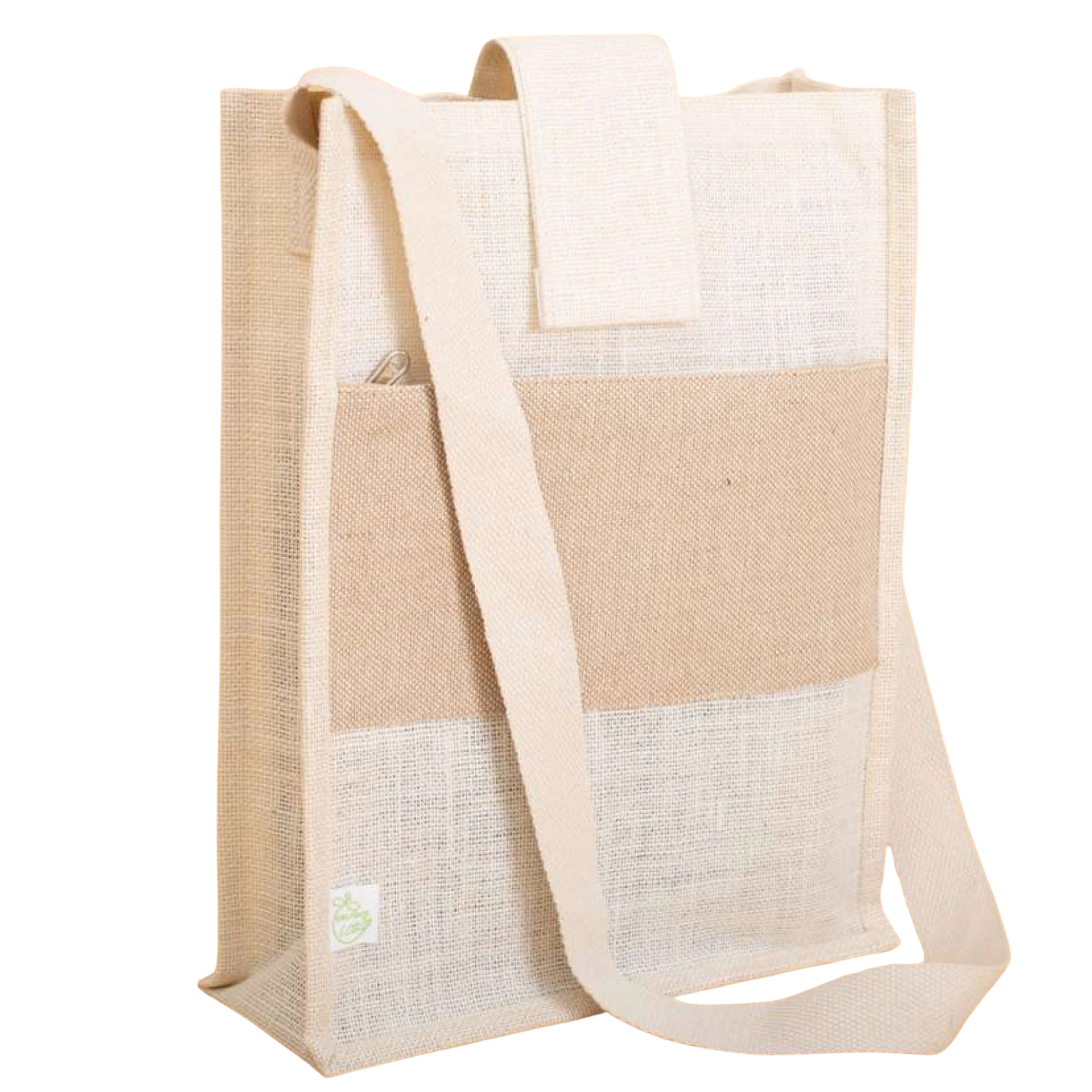 Jute Shoulder Bag with Long Handle, Front Pocket, Pack of 2.